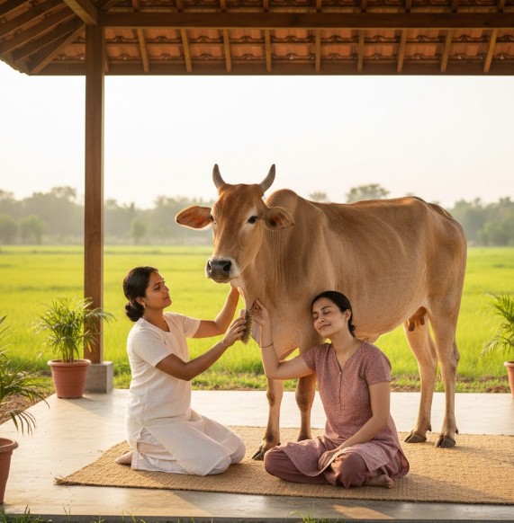 Cow Therapy, also known as Panchagavya Therapy, is based on traditional Ayurvedic principles that utilize purified products obtained from indigenous cows, such as milk, curd, ghee, urine, and dung, in carefully processed and therapeutic forms. The therapy begins with proper consultation and assessment of the individual’s health condition. According to the requirement, suitable Panchagavya-based preparations or supportive external applications are recommended under trained supervision.