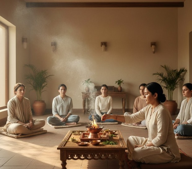 Experience the calming and balancing effects of Yagya Therapy guided by traditional wisdoms